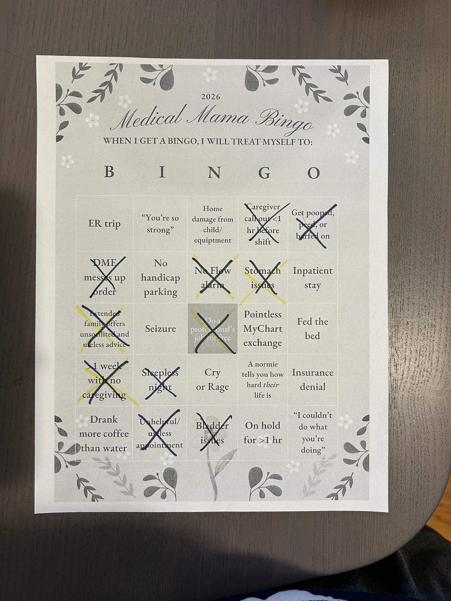 Reader Alicia Ibaraki came up with a Medical Mama bingo card which you can download here.